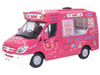 Against a basic bright pink and black body scheme, the all-over printing is a blaze of pastels, including the stylised Tonibell cow complete with its famous bell collar looking out from all sides. Notice too the addition of two ice cream cones fixed to the edge of the roof above the windscreen. The wealth of thirst-quenching offerings feature across the back window, from Slush Puppies to Pepsi, whilst the wide variety of ice creams covers the area round the serving hatch on the nearside of the van. The ice cream van is registered B18 YUM, which says it all!