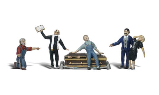 Woodland Scenics£10.75| /The preacher preaches while a man steadies an obviously distraught woman. A gravedigger kneels on the ground and points to the casket, while anothe...