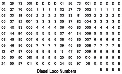 Modelmaster MMG302 DIY Sheet of Post 1968 Loco Numbers (Contains enough sets for 30 locos) - OO Scale