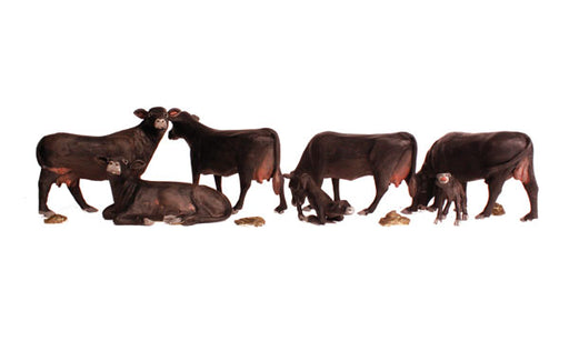 Woodland Scenics£11.25| /Black Angus cows and calves, in various poses, hang out in the pasture.Set contains 11 pieces. Colors may vary from actual product.