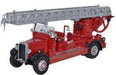 This emergency vehicle represents one of four Leyland TLM fire engines in service with the London Fire Brigade. Featuring the German designed Metz turntable ladders, DGJ310 was from the first batch of two ordered in 1934 and delivered in 1938. As Number 22 in the London fleet of turntable ladders, it saw service at Whitechapel. On the technical front, the impressive ladder was made up of four sections with a total extended length of 101 feet. The Metz ladder profile was that of a heavy steel square section with a pair of chains on the ladder turret which the firemen used to facilitate the elevation of the ladder. In addition, a Rees turbine pump emitted 500 gallons of water per minute.