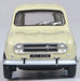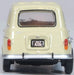 Our model is a replica of the 5-door estate Renault 4, complete with quarter lights. It is registered JVJ 410E from 1967. It is decorated in the Renault 4 distinctive colour scheme of beige with lots of exterior silver trim. The silver bumpers also feature authentic black overriders. Inside, the seats are pale brown while the dashboard is dark grey with a copper brown steering wheel. The headlights are integrated into the black and silver radiator and notice the Renault badge sitting off centre on the horizontal radiator bar.
