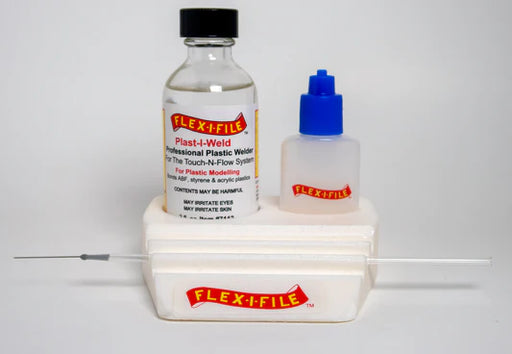 Flexi-i-File£9.55| /Flow and Solvent Cement ready for use! No more spills! Holds a 2 oz. bottle of Plast-I-Weld Solvent Cement, Filler/Cleaner Bottle and Touch-N-Flow...
