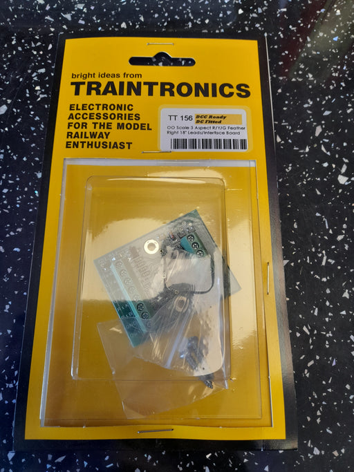 TrainTronics TT 156 OO Scale 3 Aspect R/Y/G Feather Right 18" Leads/Interface Board, DCC Ready, DC Fitted - OO Gauge