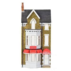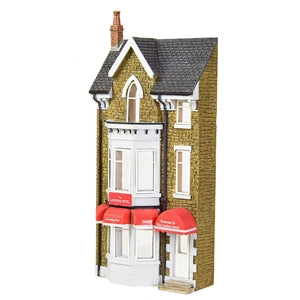A seaside holiday would not be a seaside holiday without the comfort and charm of a stay in a classic British B&B. This Victorian-era building complete with its Gothic arch top window is situated just a stone’s throw from the beach and offers all the comforts of home, plus a bar and 5-star rating, naturally! Gone are the of days of strict single room occupancy or sleeping on the prom if you get back after 10pm (or 10 pints), the Lindene Hotel will always offer guests the warmest of welcomes, especially after a long train ride from the mill towns of Lancashire, or a day spent eating chips, building sandcastles and taking donkey rides! This low relief model features embossed brickwork, glazed windows and detailing including guttering and drainpipes and is ready to be placed onto your layout straight out of the box. We are sure this will make a wonderful addition to a town or seaside layout or diorama!
