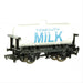 4 wheel milk tank wagon with the lettering of "Tidmouth Milk" on the tank. This wagon features loop and hook style couplings and can be coupled with other wagons in the Thomas the Tank Engine Series.
