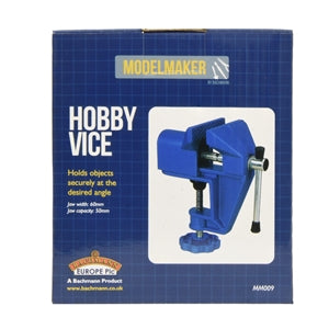 Holds objects securely at the desired angle • Jaw Width: 60mm • Jaw Capacity: 50mm Made from an aluminium alloy, combining strength with lightness, making it ideal for use with portable workbenches, the kitchen table or wherever a strong temporary fixing is required. The jaws have cross cut face plates for better grip. The vice can be attached to benches up to 25mm thickness and the adjustable clamp head allows for uneven surfaces. As any model maker or DIY enthusiast will know, it is essential to have a job held securely and in the right position, especially when working on precise items. By securing items whilst working on them you can ensure better accuracy and minimise mistakes.