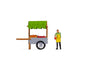 With the Tiny-Scenes you can create a realistic weekly market on your model landscape. This set includes a fruit stall and a salesman. The brown fruit stall is covered with a green roof and has wheels to make transport easier. There are various types of fruit inside. The seller is wearing a green pullover with red cuffs. He is also wearing dark trousers and a yellow work apron. The man is holding a magnificent specimen of his fruit varieties in his hand.